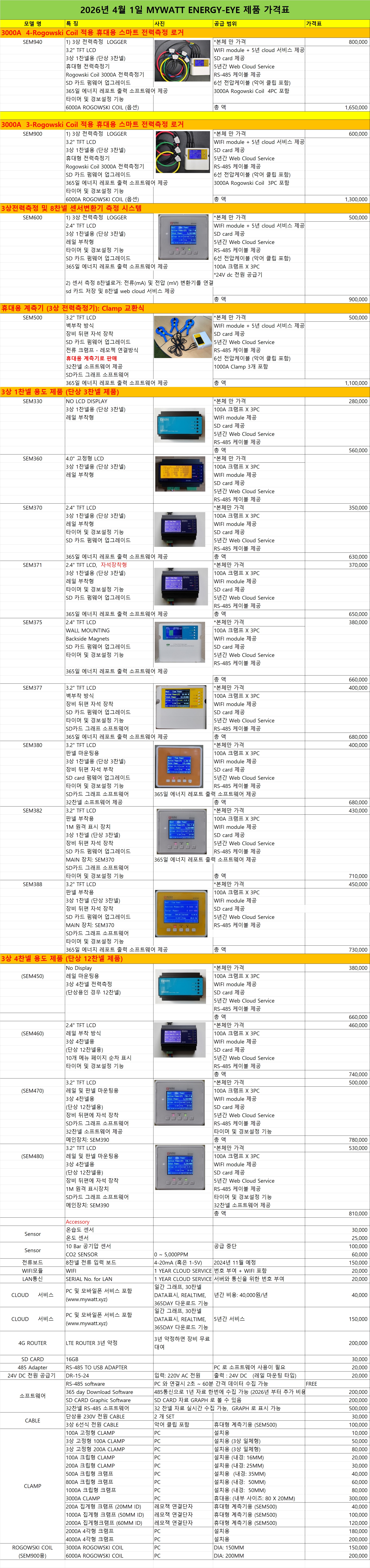 SEM3000 (SEM3110) ¹«¼± 10Âù³Ú Àü·Â ÃøÁ¤±â °¡°ÝÇ¥
